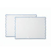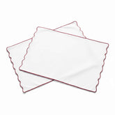 Hand-embroidered linen-cotton placemats with scalloped edges for setting a refined table.