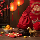 Crafted from richly woven fabric with floral embroidery and fine stitching throughout, finished with a fully lined interior. A modern red knot bag designed for Chinese New Year and carried well beyond it.